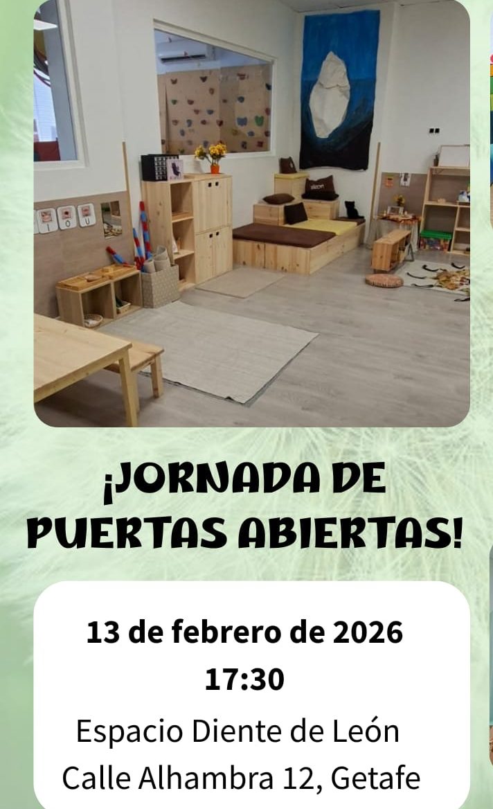 Ven y acompáñanos en nuestra jornada de puertas abiertas en Diente de León, ubicado en Getafe. Este evento es una oportunidad única para conocer nuestras instalaciones, interactuar con nuestro equipo y descubrir todo lo que ofrecemos para el desarrollo de tus pequeños. Habrá actividades, demostraciones y muchas sorpresas que no querrás perderte. ¡Anota la fecha en tu calendario y ven a disfrutar con nosotros!